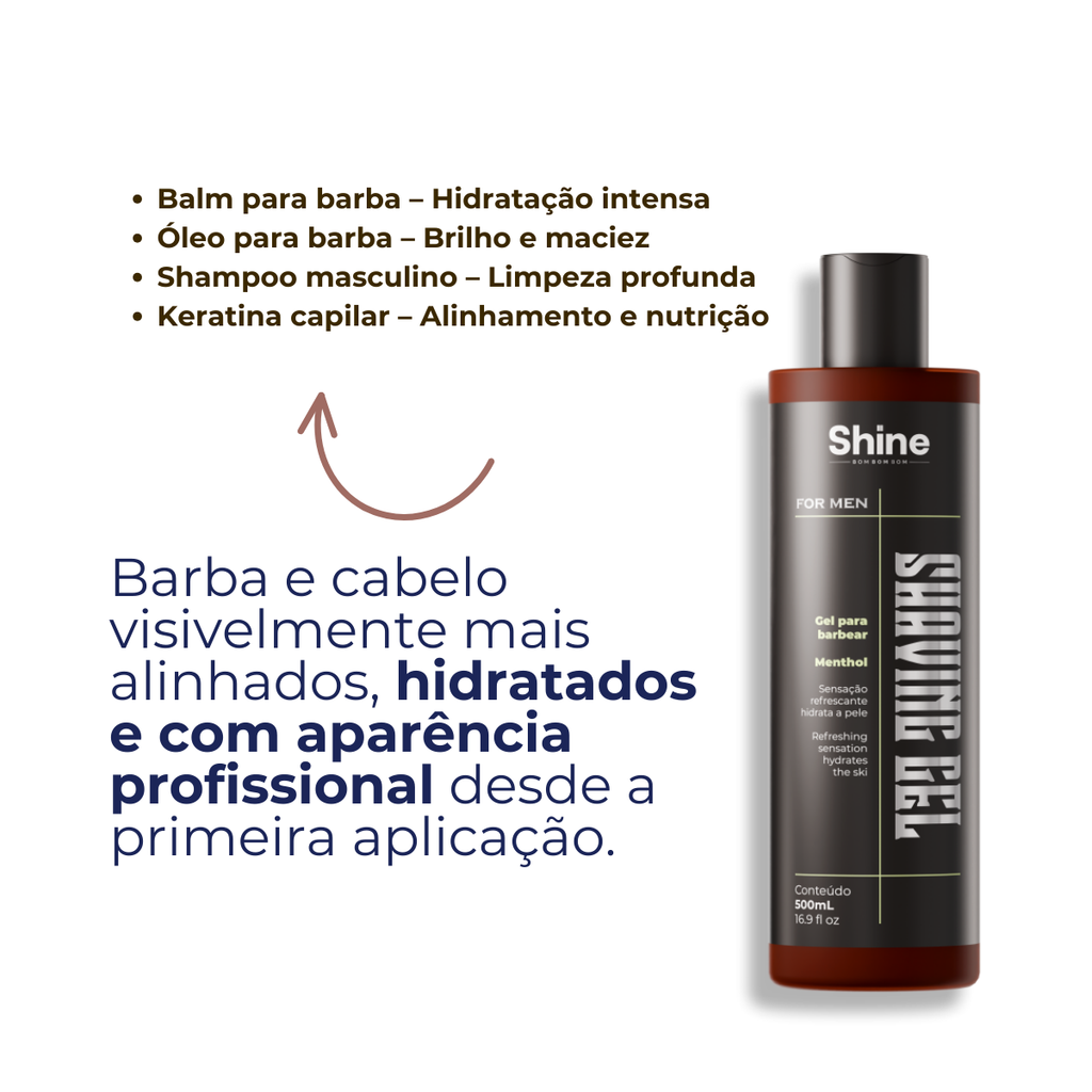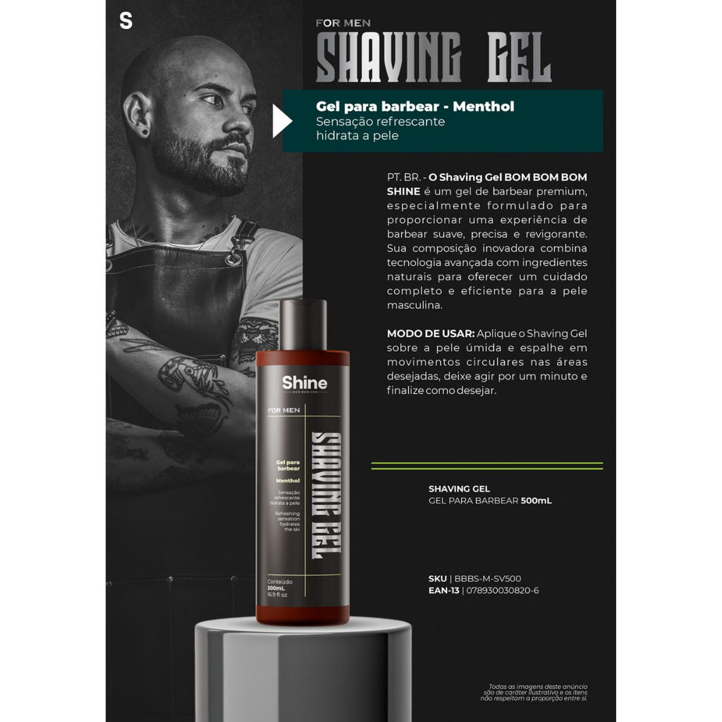 O Shaving Gel BOM BOM BOM SHINE é um gel de barbear premium, especialmente formulado para proporcionar uma experiência de barbear suave, precisa e revigorante. Sua composição inovadora combina tecnologia avançada com ingredientes naturais para oferecer um cuidado completo e eficiente para a pele masculina.